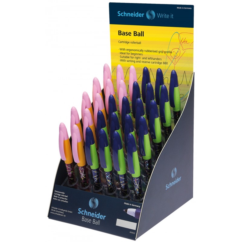 • Display 30 rollere SCHNEIDER Base Ball - (18 x albastru/verde, 12 x roz/orange) - scriere albastra