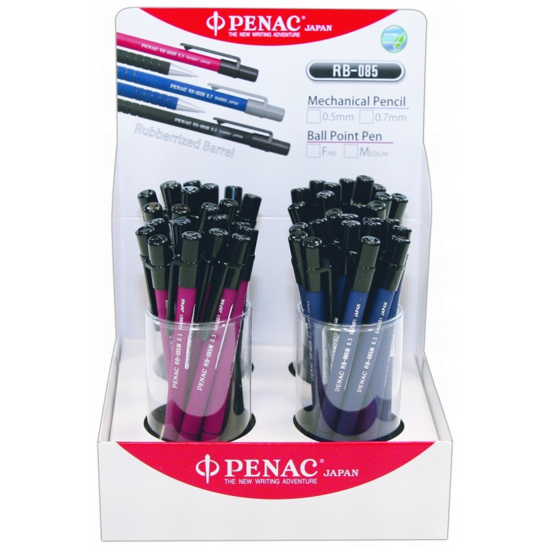Display 48 creioane mecanice 0,5mm, PENAC RB-085M - asortate (6 x rosu, 18 x negru, 24 x albastru)