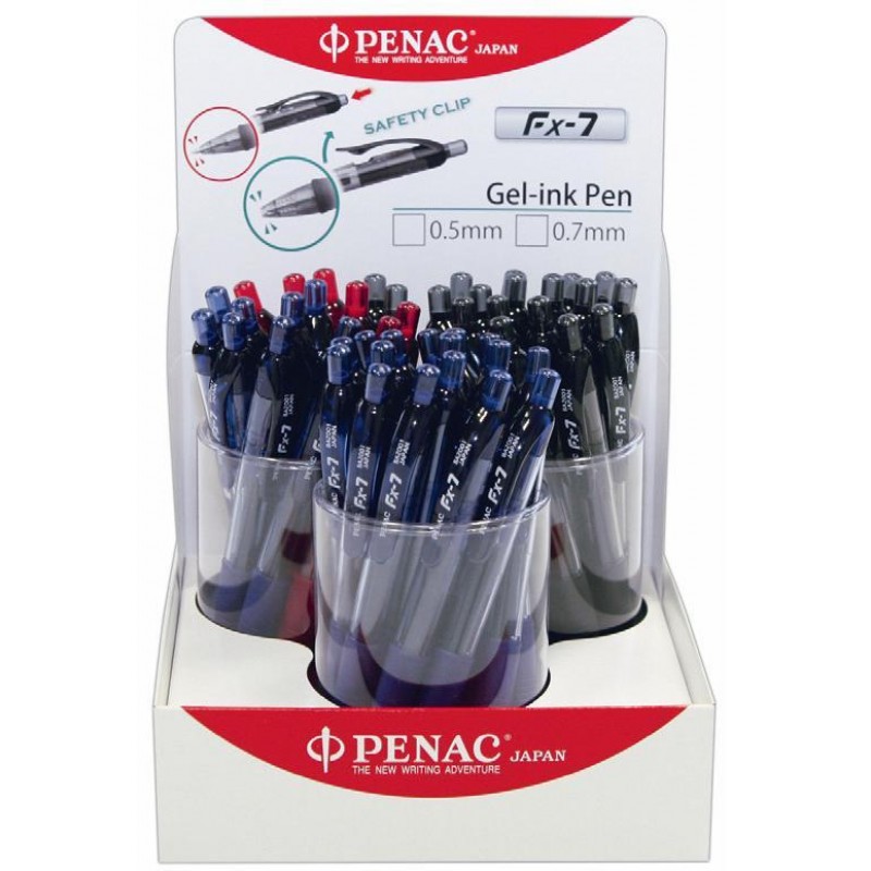• Display 48 pixuri transparente cu gel, PENAC FX-7 - asortate (6 x rosu, 18 x negru, 24 x albastru)
