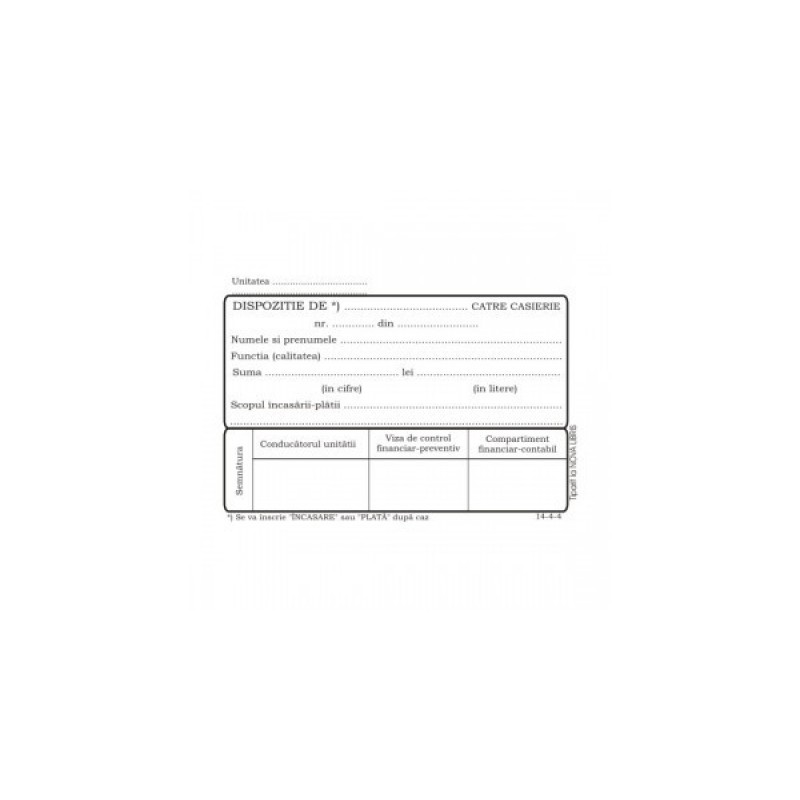 • Dispozitie plata casierie, format A6, 100 coli/carnet