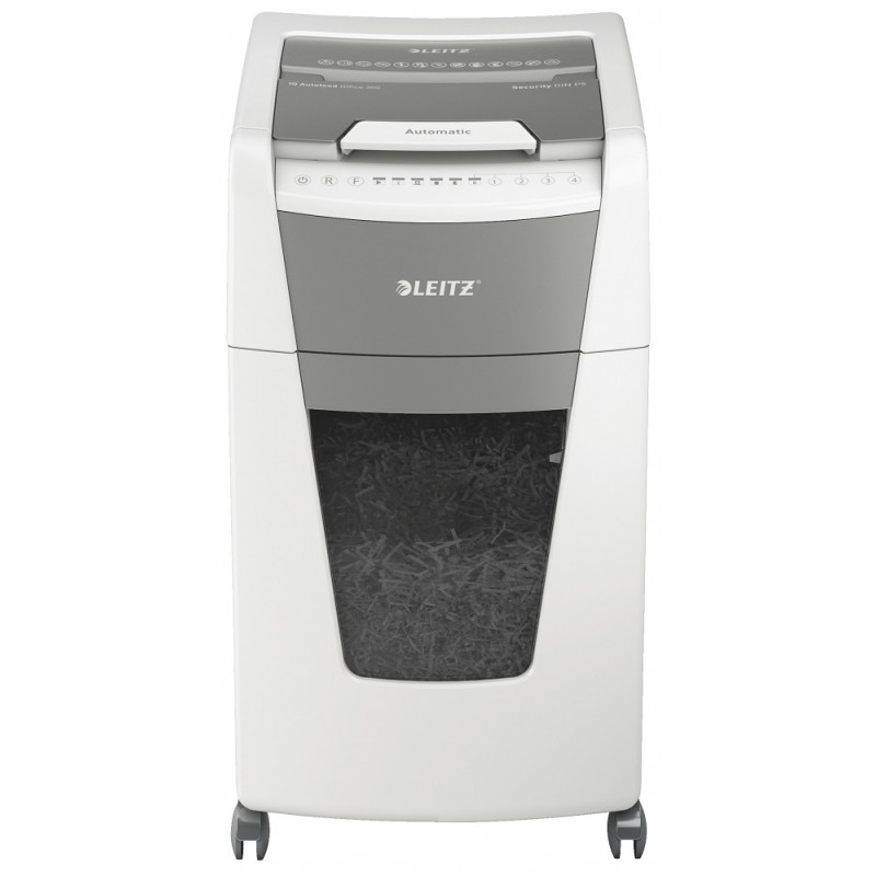Distrugator documente automat LEITZ IQ Office, P5, micro-cut (particule), 300 coli, cos 60l, alb-gri