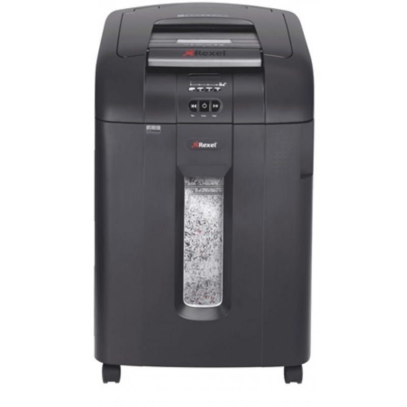• Distrugator documente automat REXEL AUTO+ 600M, P5, micro-cut (particule), 600 coli, cos 80l, negru