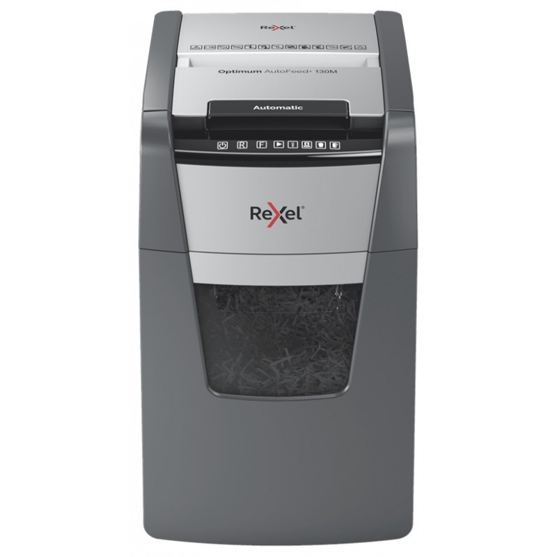 Cod produs:RX-2020130MEUDistrugatorul automat pentru documente Rexel Optimum AutoFeed+ 130M distruge automat 130 coli A4 (80 gsm) dintr-o singura incarcare, in bucati de 2x15 mm (P-5, micro cut).