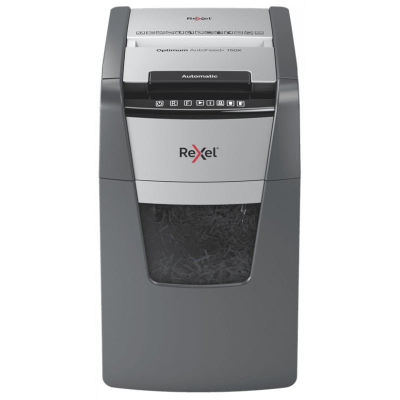Cod produs:RX-2020150XEUDistrugatorul automat pentru documente Rexel Optimum AutoFeed+ 150X distruge automat 150 coli A4 (80 gsm) dintr-o singura incarcare, in bucati de 4x28 mm (P-4, cross cut).