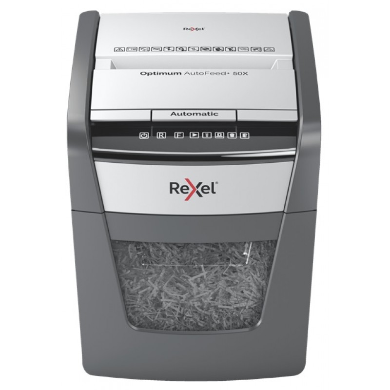 Cod produs:RX-2020050XEUDistrugatorul automat pentru documente Rexel Optimum AutoFeed+ 50X distruge automat 50 coli A4 (80 gsm) dintr-o singura incarcare, in bucati de 4x28mm (P-4, cross cut).