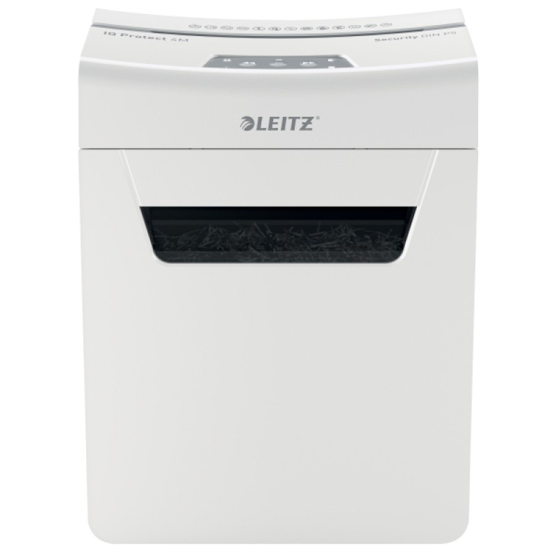 Distrugator documente manual LEITZ IQ Protect 4M, P5, micro-cut (particule), 4 coli, cos 14l, alb