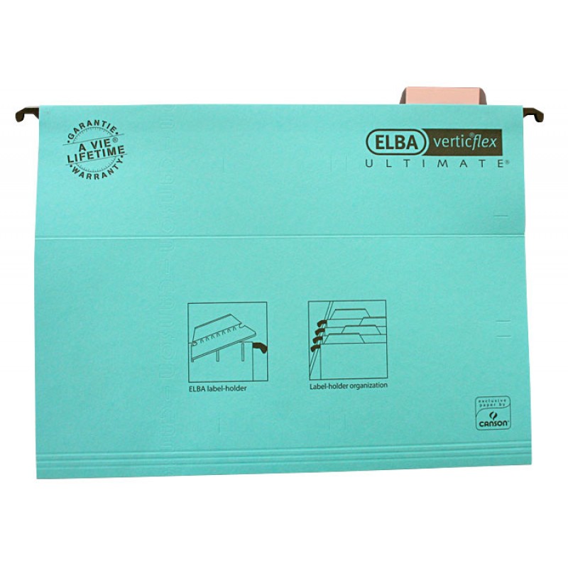 • Dosar suspendabil cu eticheta, bagheta metalica, carton 330g/mp, ELBA Verticflex Ultimate - albastru