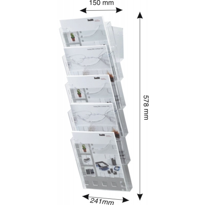 Dysplay modular de perete (fisier mural), 5 x A4, HELIT - transparent fumuriu
