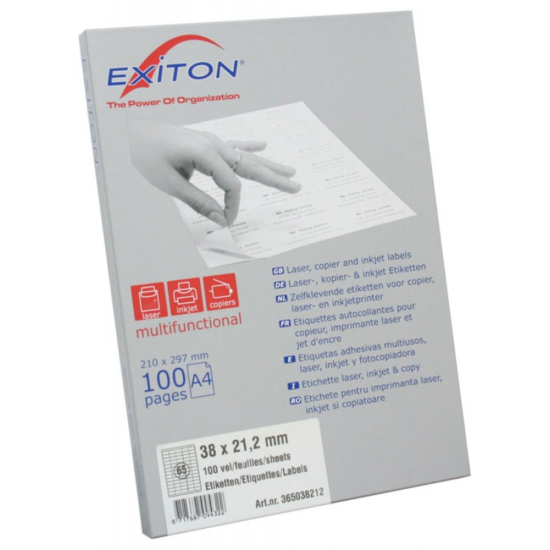 Etichete albe autoadezive 65/A4, 38 x 21,2 mm, 100 coli/top, EXITON