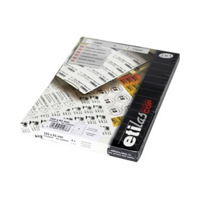 Etichete autoadezive 4/A4, 192 x 61mm, 100 coli/top, pentru bibliorafturi, ETILASCOP - albe