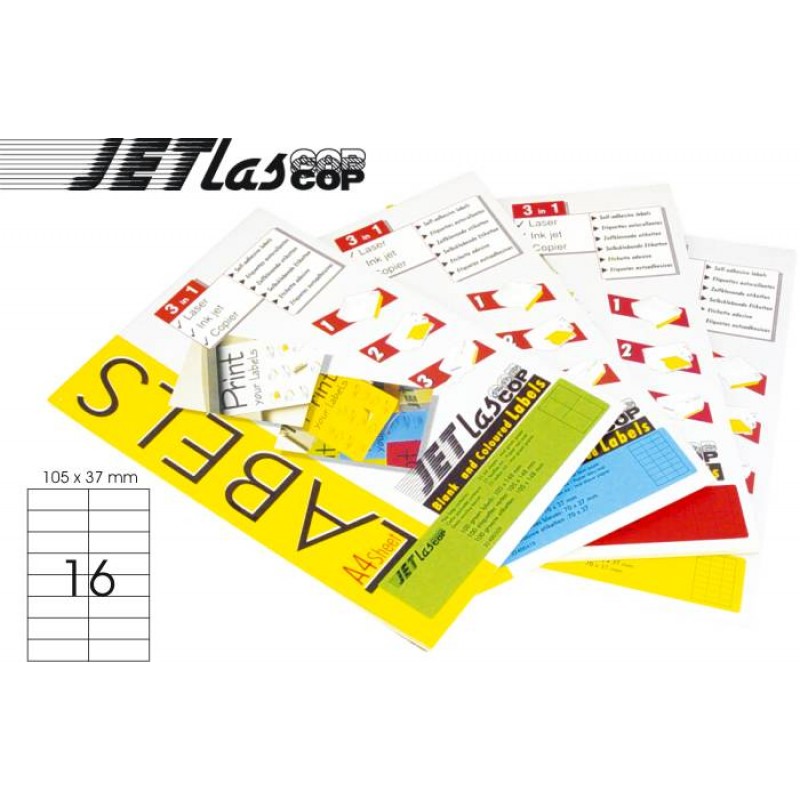 Etichete color autoadezive 16/A4, 105 x 37 mm, 25 coli/top, JETLASCOP - rosu