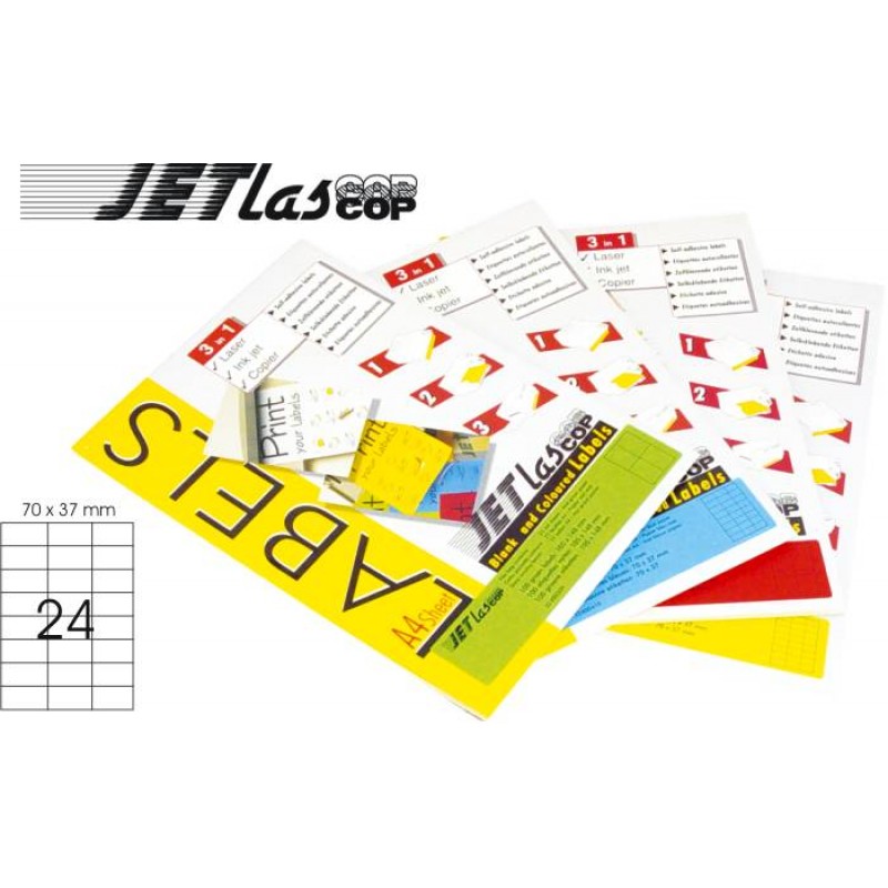 • Etichete color autoadezive 24/A4, 70 x 37 mm, 25 coli/top, JETLASCOP - galben