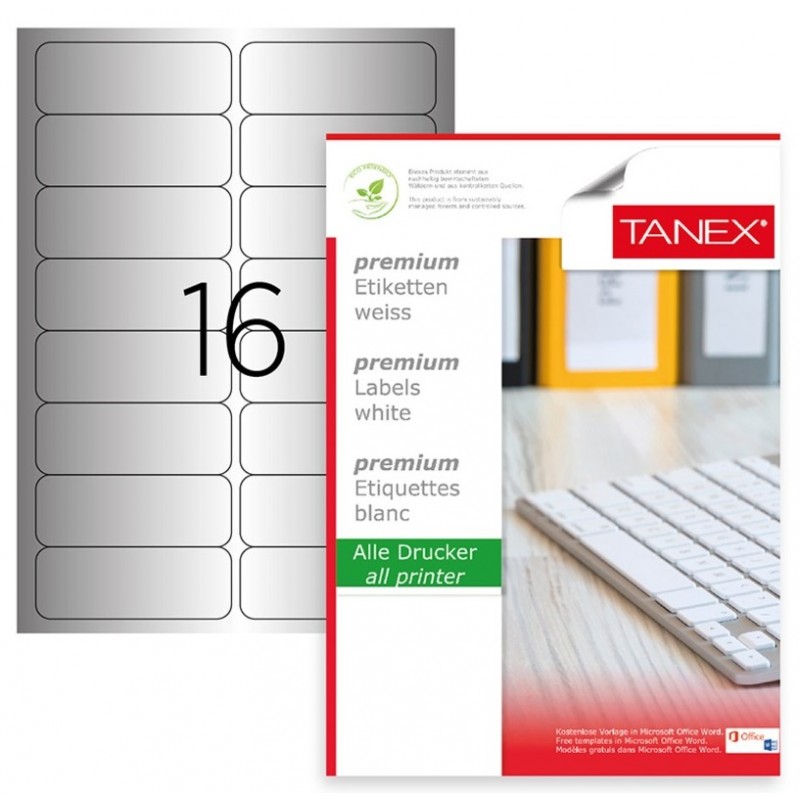 Etichete polyester argintii, autoadezive, 16/A4, 99.1 x 34mm, 25 coli/top, TANEX - colturi rotunjite
