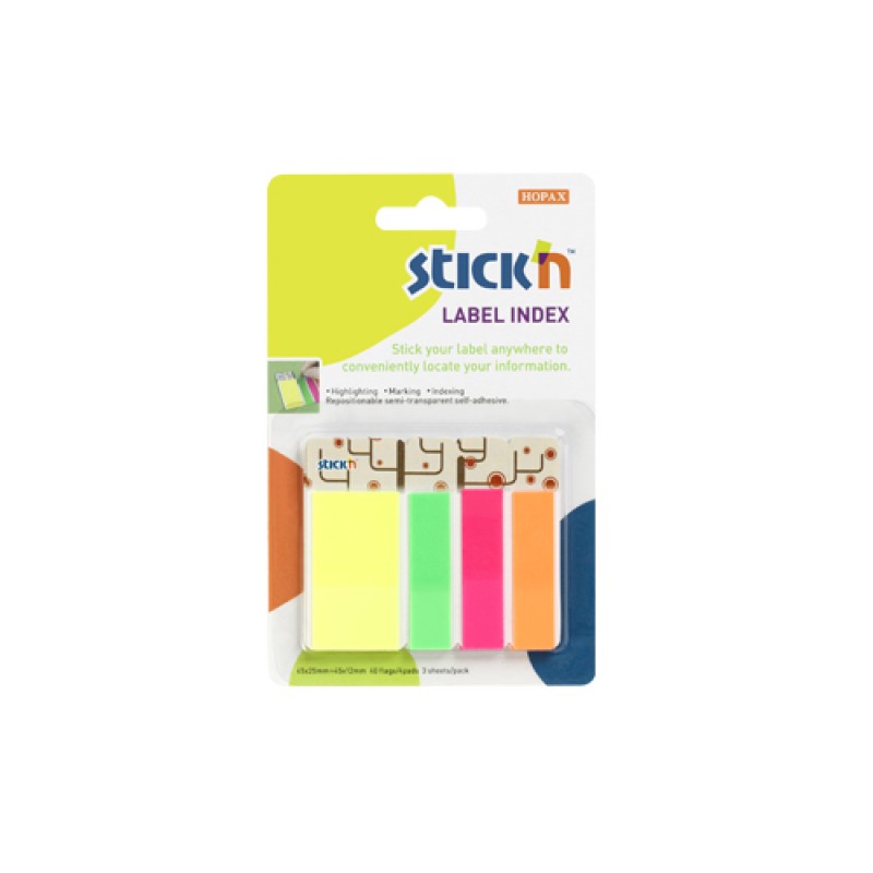 Film index autoadeziv 45 x 12mm + 45 x 25, 4 x 30 file, Stick"n - 4 culori