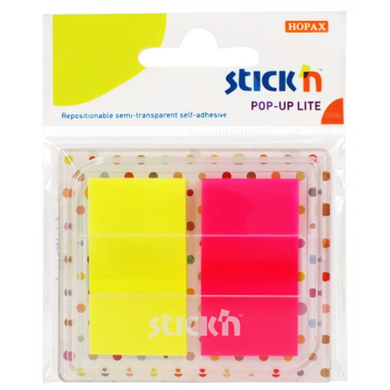 Film index autoadeziv 45 x 25mm, 2 x 20 file, dispenser, Stick"n Pop-up Lite - 2 culori neon