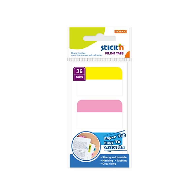Film index autoadeziv cu tab din hartie, 28 x 45mm, 36 buc/set, Stick"n - culori asortate