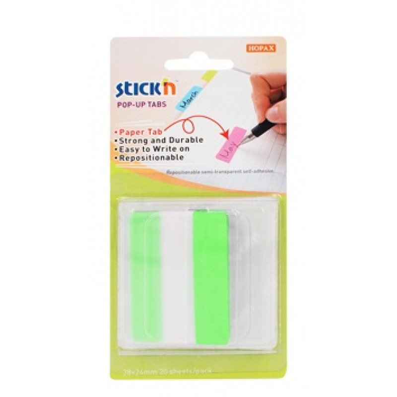 Film index autoadeziv cu tab din hartie, 38 x 50mm, 10 file/set, Stick"n Pop-up - vernil