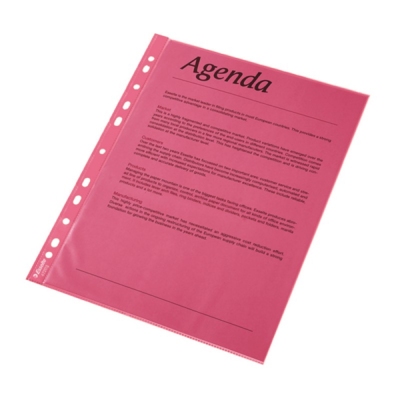Folie de protectie ESSELTE, A4, 55 mic, 10 buc/set, cristal, rosu