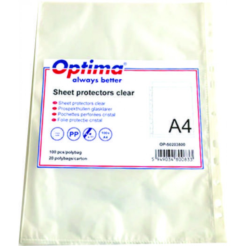 Folie protectie pentru documente A4, 40 microni, 100 folii/set, Optima - cristal