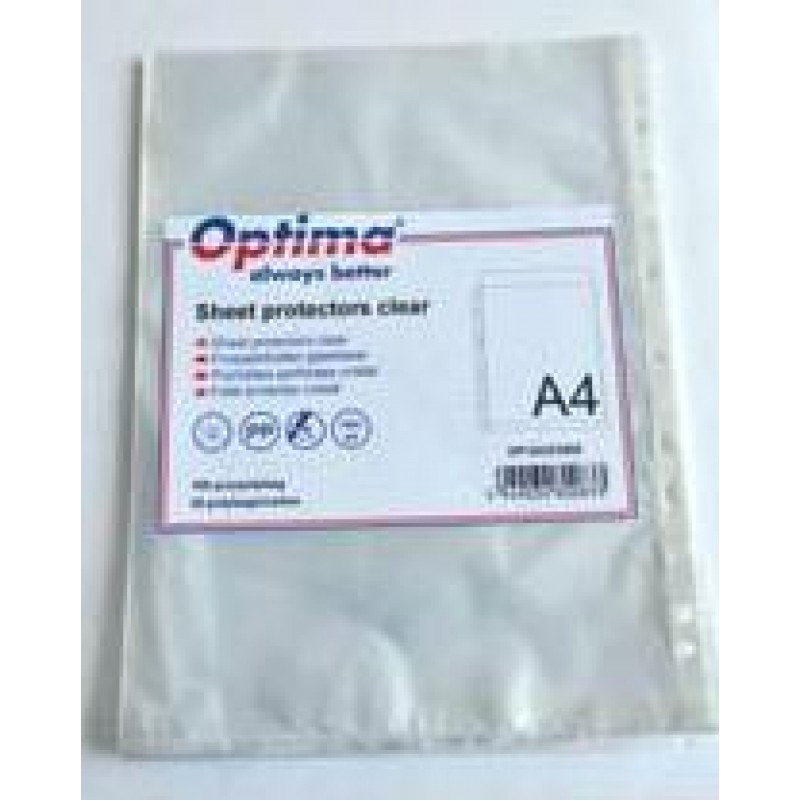 Folie protectie pentru documente A4, 40 microni, 100 folii/set, Optima - transparent