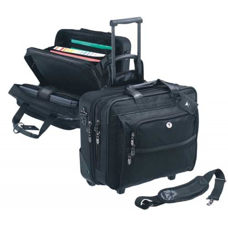 Geanta laptop 15"(43x33x21cm), polyester DuraTuff 1680, maner si rotile, FALCON - negru
