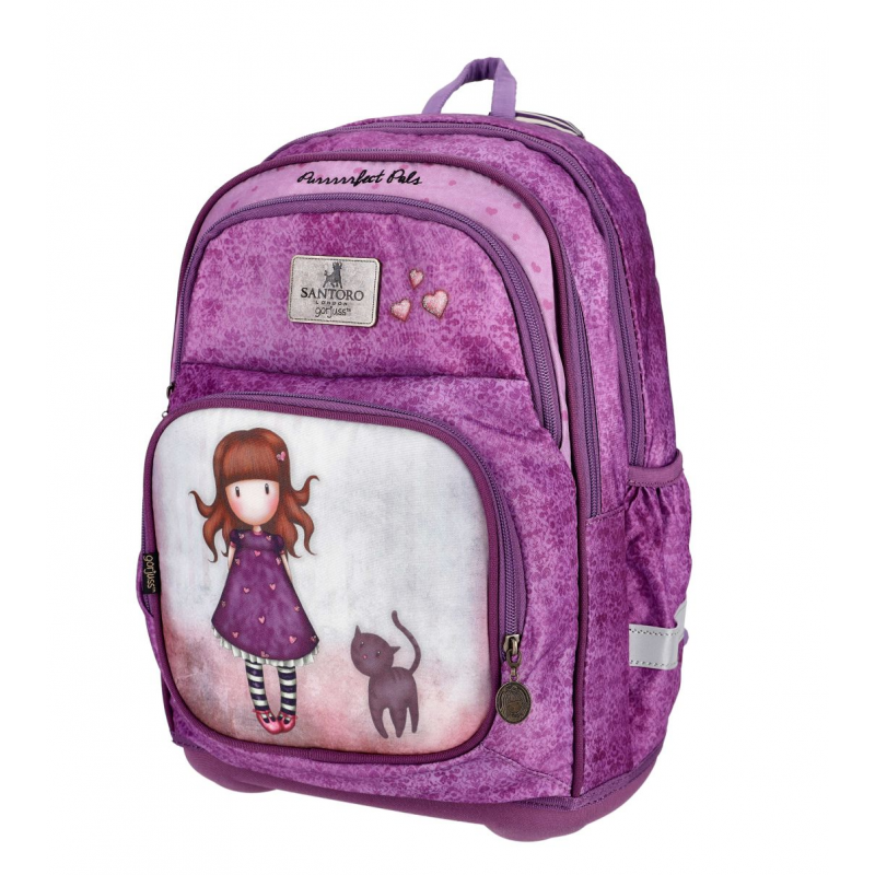 Cod produs:21GJS906-PURGhiozdanul Santoro Gorjuss are 2 compartimente principale cu fermoar; buzunar mare frontal cu fermoar; buzunar mic frontal cu inchidere cu fermoar, buzunare laterale;