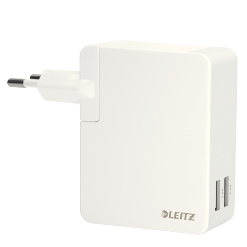 Incarcator dual universal LEITZ Complete, pentru perete, port USB, 24W - alb
