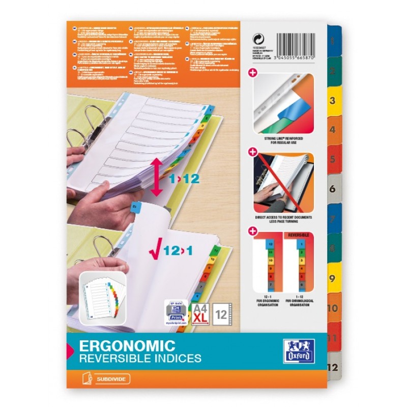 Cod produs:OX-100204627Separatoarele OXFORD sunt disponibile in 12 file, cu file laminate colorate pe doua fete pentru identificare usoara si organizare optima.