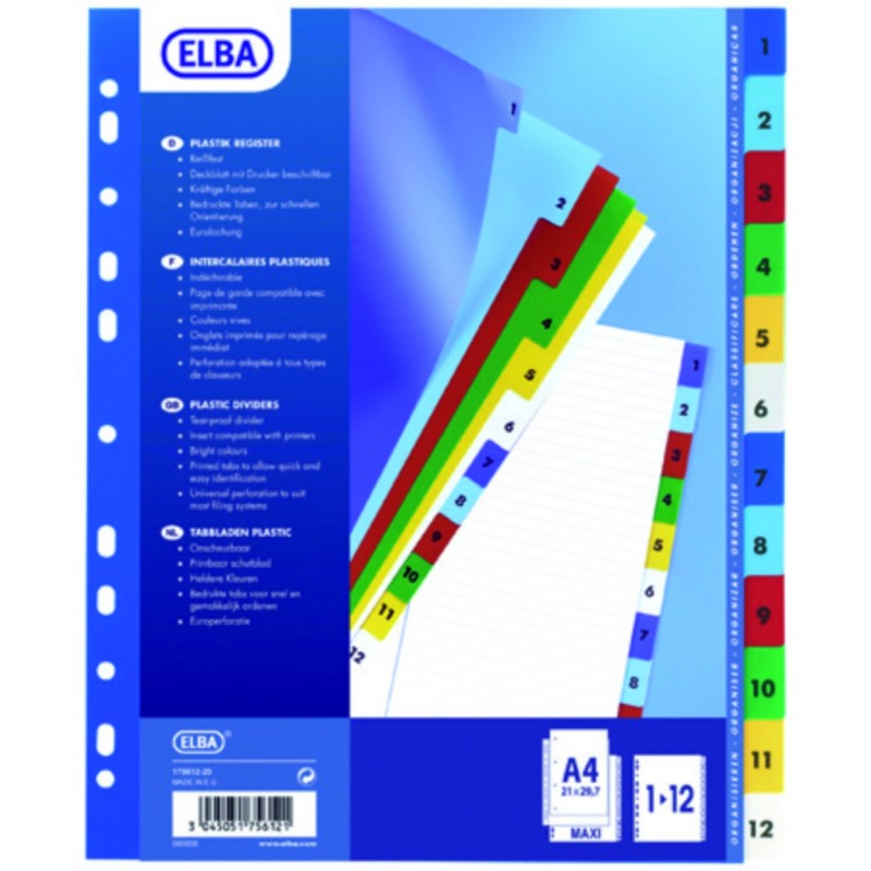 Index plastic color numeric 1-12, A4 XL, 120 microni, ELBA