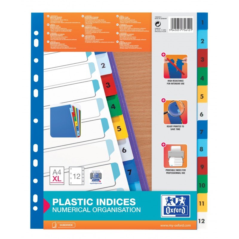 Index plastic color numeric 1-12, A4 XL, 120 microni, OXFORD