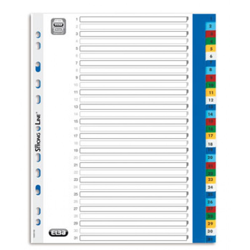 Index plastic color numeric 1-31, A4 XL, 120 microni, ELBA