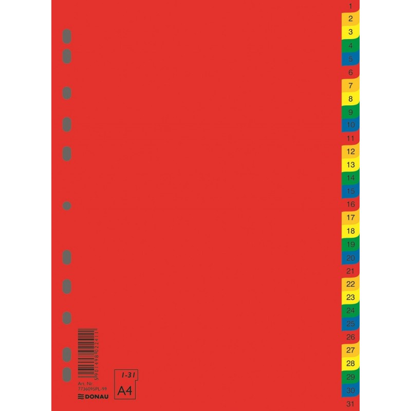 Index plastic color, numeric 1-31, extra wide, A4+, 120 microni, DONAU