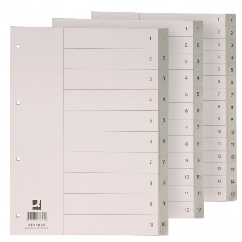 • Index plastic gri, numeric 1-12, A4, 120 microni, Q-Connect