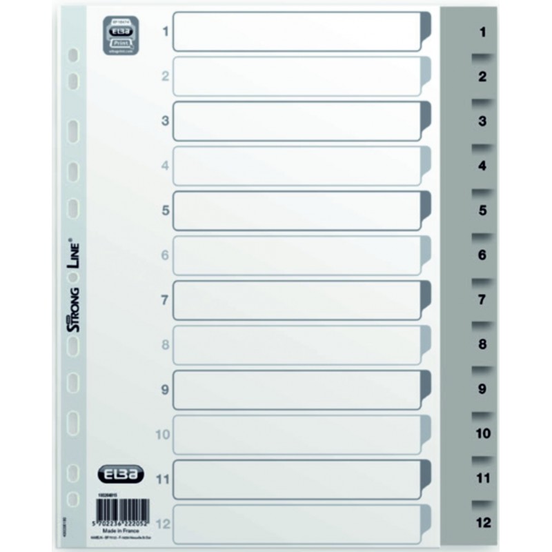 • Index plastic gri numeric 1-12, A4 XL, 120 microni, ELBA