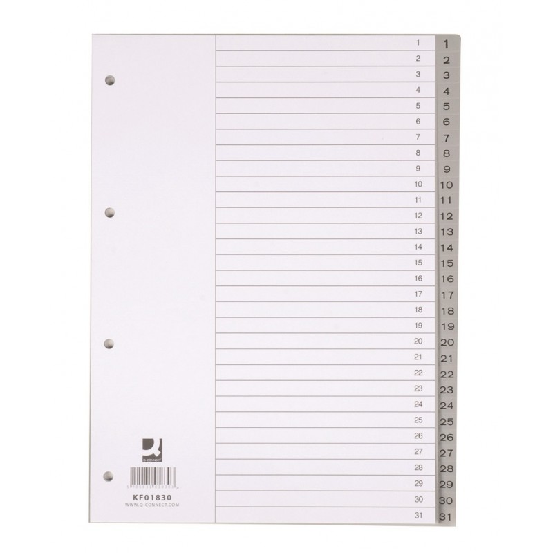 Index plastic gri, numeric 1-31, A4, 120 microni, Q-Connect