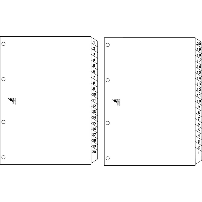 • Index reversibil numeric 1-20/20-1, A4, carton alb 190g/mp, KANGARO Easy Move