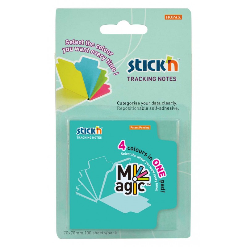 Magic tracking notes 70 x 70 mm, 4 x 25 file/set, Stick"n - 4 culori neon