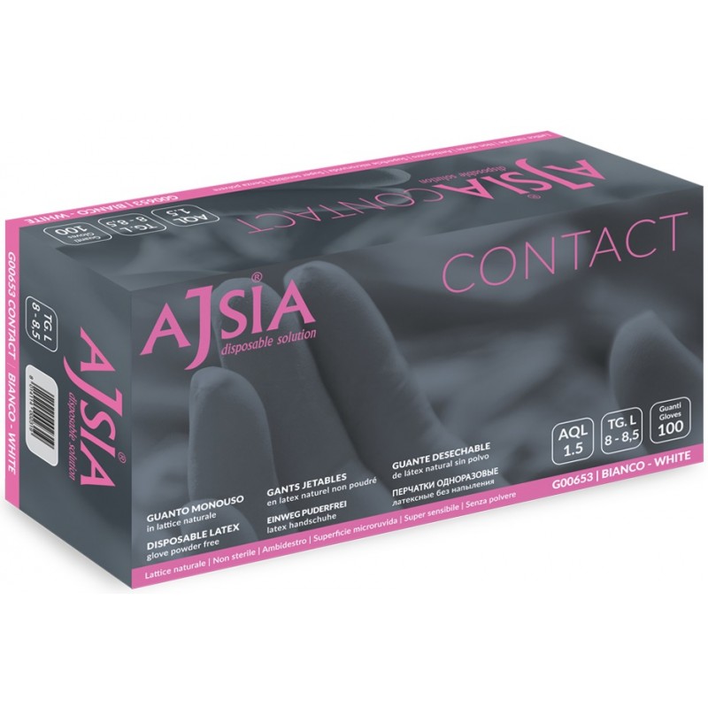 • Manusi latex AJSIA Contact, unica folosinta, nepudrate, 0.11mm, 100 buc/cutie - albe - marime XL