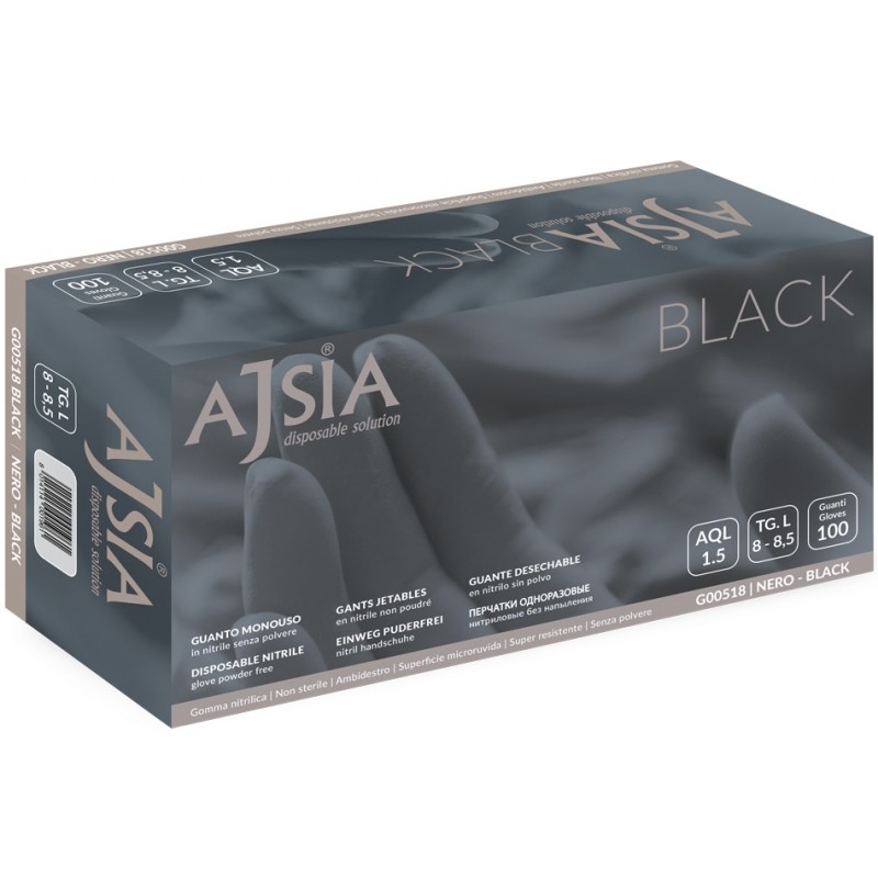 Manusi nitril AJSIA Black, unica folosinta, nepudrate, 0.13mm, 100 buc/cutie - negre - marime M