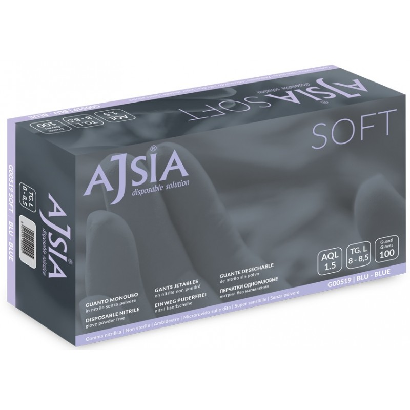 Manusi nitril AJSIA Soft, unica folosinta, nepudrate, 0.09mm, 100 buc/cutie - albastre - marime XL