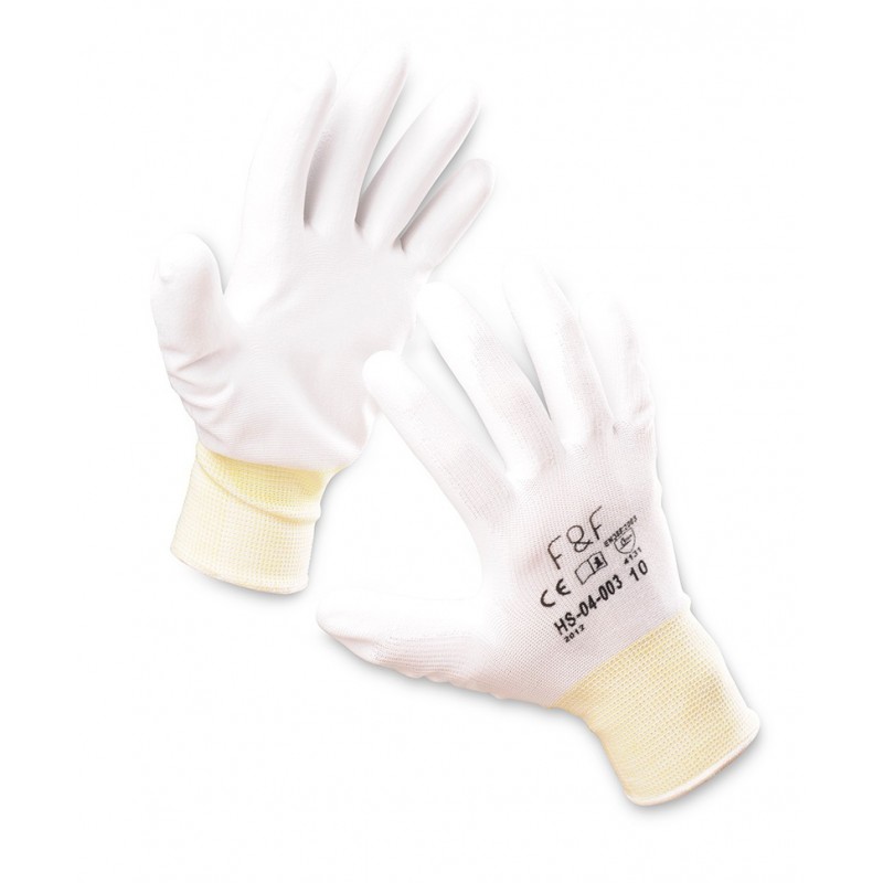 • Manusi protectie, standard EN420, EN388:4131, degete cauciucate cu polyurethan - marimea 9 - albe