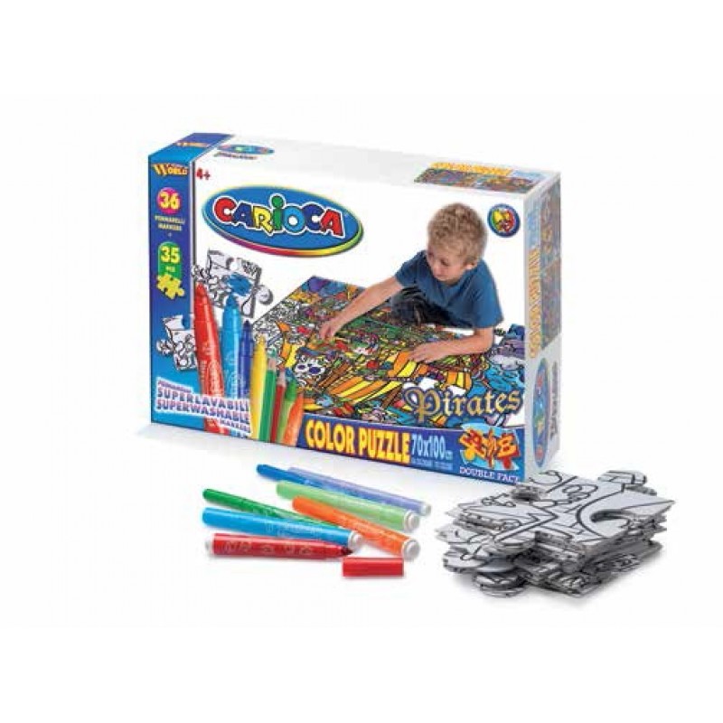 Maxi-Puzzle de colorat, 35 piese + 36 carioca lavabile, CARIOCA Adventures