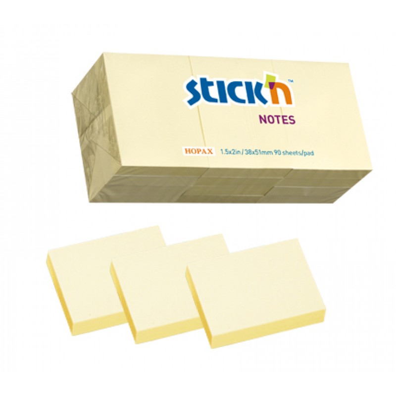 Notes autoadeziv 38 x 51 mm, 3 x 100 file/set x 4 seturi (12 seturi), Stick"n - galben pastel