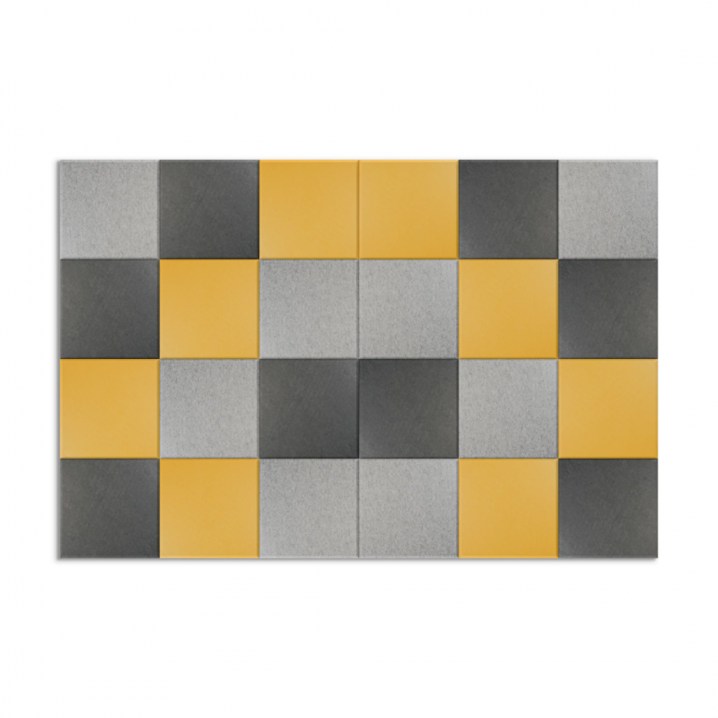 Panou absortie acustica, 30x 30 cm, PET felt, 24 buc/set, SMIT - galben, gri deschis, gri inchis