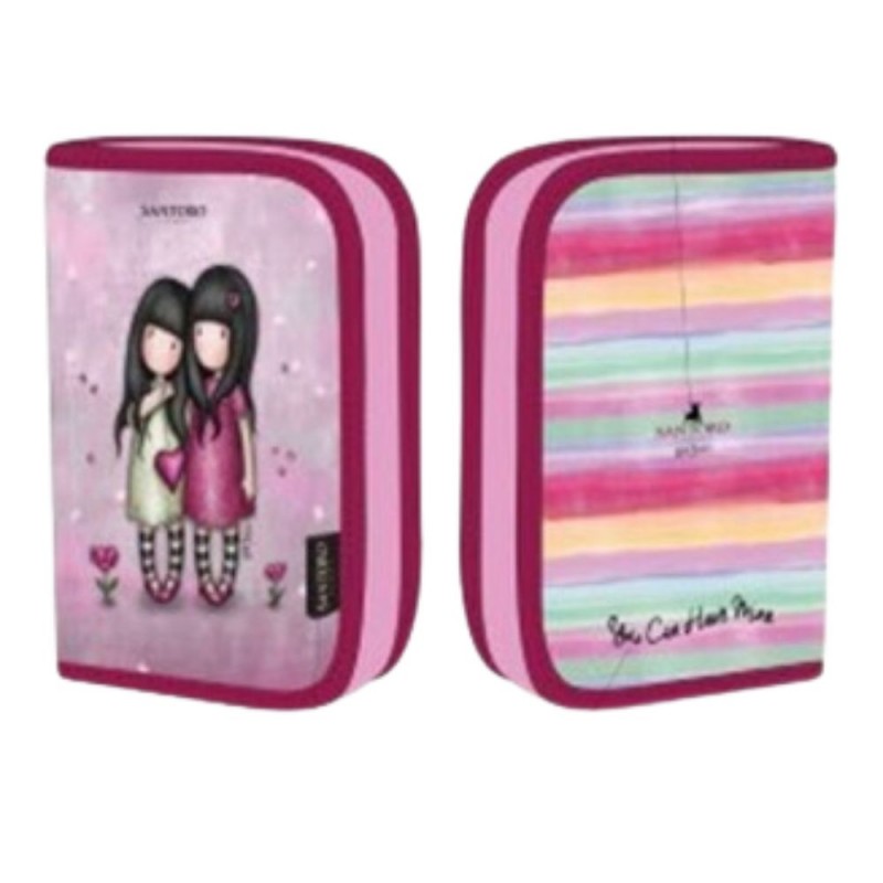 In interior este prevazut cu elastice pentru instrumentele de scris, un buzunar interio si suport pentru rigla.