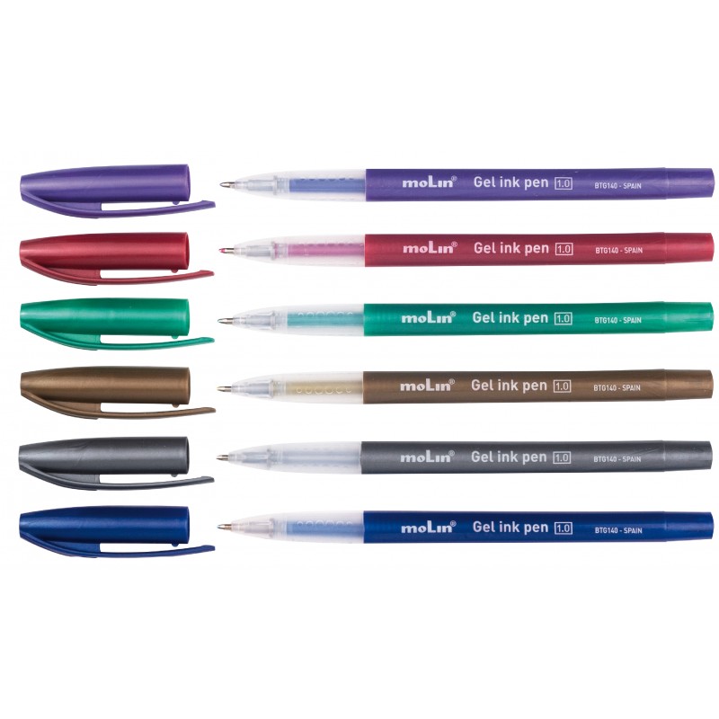 • Pix cu gel, 1.0 mm, 6 culori/blister, MOLIN - culori metalizate