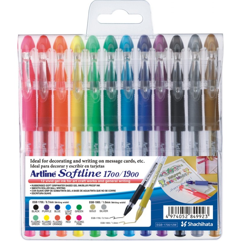 Pix cu gel ARTLINE Softline 1700, rubber grip, varf 0.7mm, 12 culori/set
