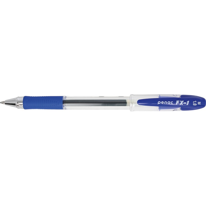 Pix cu gel PENAC FX-1, rubber grip, 1.0mm, con metalic, corp transparent - scriere albastra