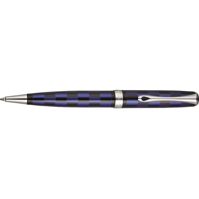 Diplomat Excellence este un pix placat albastru cu negru, cu un design classic, finisaj de lac, cu mai multe straturi si accesorii cromate mate.