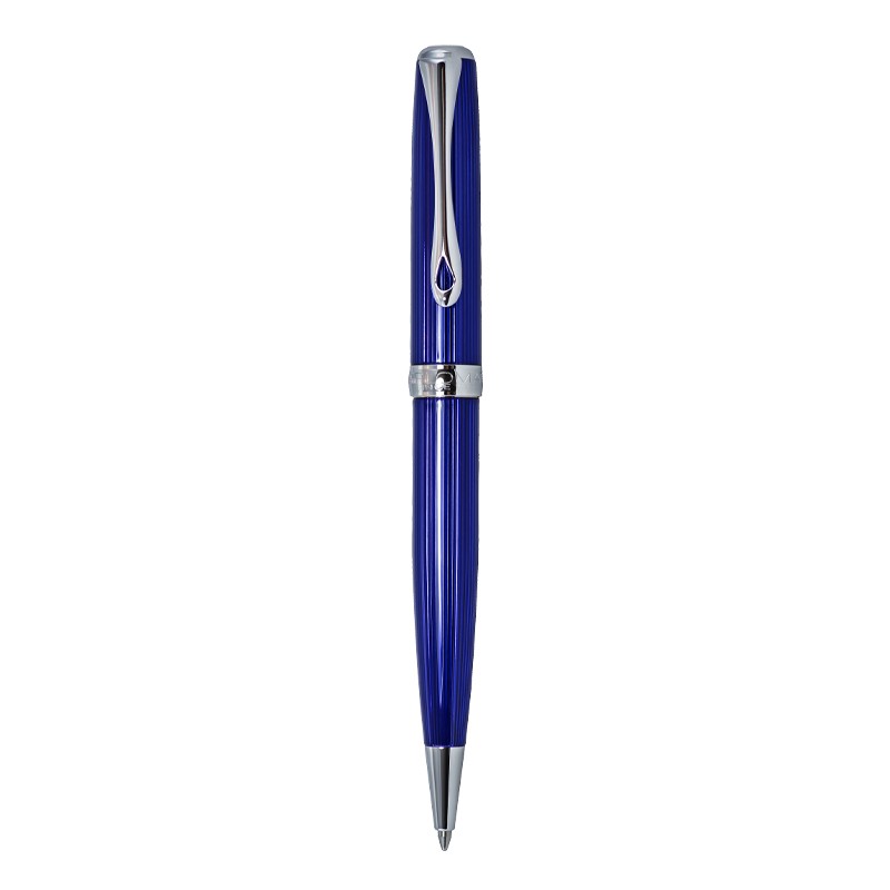 Diplomat Excellence este un pix cu finisaj de lac albastru, stralucitor, cu mai multe straturi de culoare albastra, cu finisaje cromat lustruite.